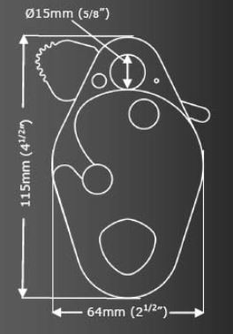 The Rocker is a self-tailing device, but the Thumb-catch can be used to park the device on the rope, for Work Positioning or use as a Rope Access back-up device. The Rocker is fitted with non-aggressive 'rope friendly' cam faces.