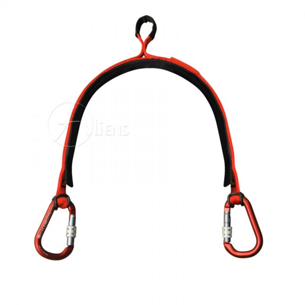 Heavy laod spacer for harnesses, designed for progression in confined spaces. Fitted with a rigid structure to not interfere with the head. Supplied with two screw sleeve connectors for attachment to the shoulder of harness. Can also be used with the special harness for overturned descent mod. MIKE #8W.300