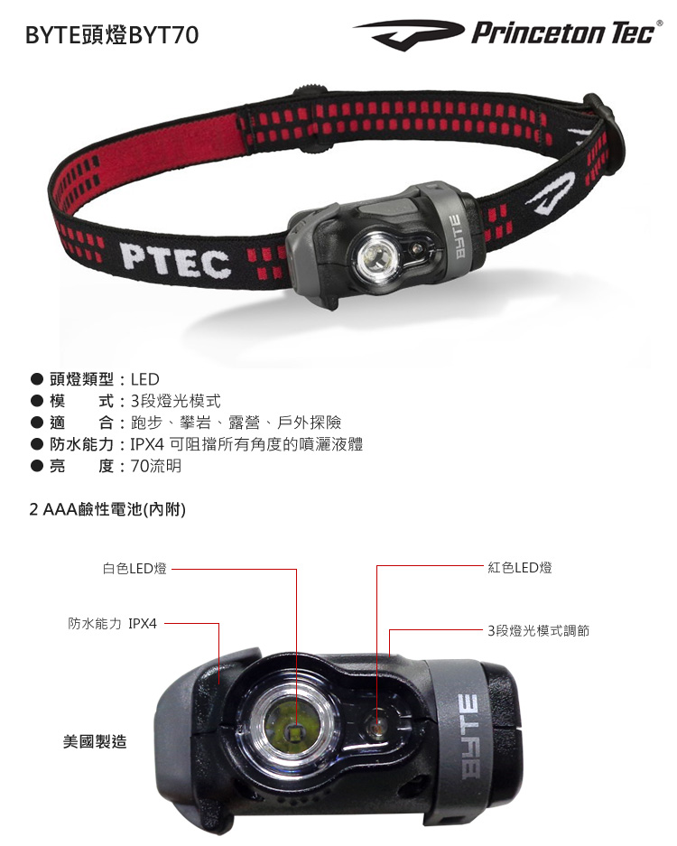 品 名: Princeton Tec BYTE頭燈